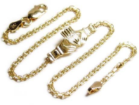 Solid 14k Gold 10" Claddaugh Ankle Bracelet - JewelryWeb Product Description: