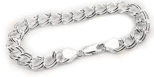 9mm Wide Sterling Silver 8" Double Link Chain Charm Bracelet Product Description: